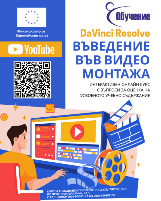 ДЗЗД „Обучение“ представя новия си интерактивен онлайн курс за самообучение по видео монтаж, създаден по оригинални сценарии и реализиран с добавена интерактивност чрез платформата Edpuzzle.